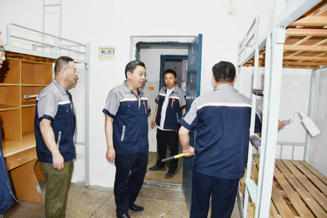 党史学习教育开展以来,学校各处室、院部迅速行动,把“我为师生办实事”实践活动作为党史学习教育重要内容和检验实践成效的重要方面。7月12日,校领导深入学生宿舍区,检查学生宿舍改造及配套设施建设进展情况。在学生公寓楼A楼的宿舍里,校领导撸起袖子,粉刷墙面,当起了“粉刷匠”。一同前往的教职工们纷纷发扬乐于奉献的“老黄?!本?,投入到宿舍改造的工作中。酷暑中,大家争先恐后地清理墙面,粉刷墙壁,打扫卫生,不怕苦不怕累,不放过任何一处微小的细节。高温的天气下,闪亮的党徽在汗水的浸渍中熠熠生辉,形成了一道靓丽的风景线。他们用一颗颗赤诚火热的心诠释了强烈的校园主人翁精神。