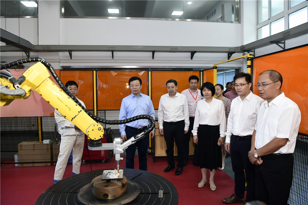 说明会结束后,专家组一行实地考察了学校交通运输行业船文化中心、交通装备工业机器人实训基地、交通运输物联网技术实训基地、智能控制工程中心、大学生服务中心、校园书店、党建文化长廊、职工之家等。