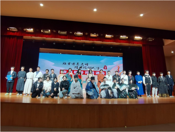 1月3日下午,由基础教学部主办,语文教研室承办的“雅言传承文明,经典浸润人生”音舞剧诗词朗诵会在学校大礼堂举办。来自信息管理学院、交通工程学院和机电工程学院的200余名学生,在这场活动中共同领略诗词的华彩之美,浸润感受诗词的魅力。