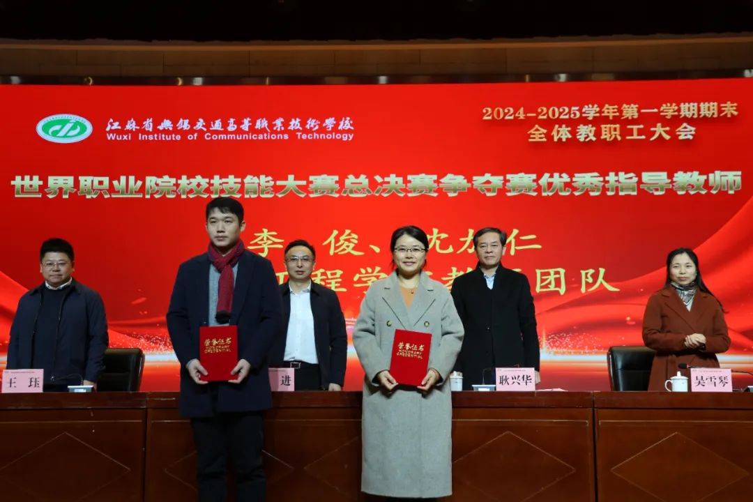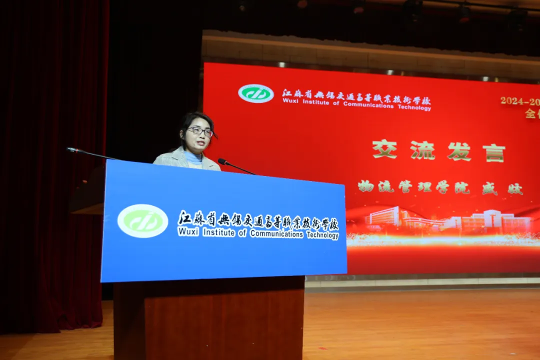 学校党委委员、副校长吴雪琴宣读2024年学?!笆笫隆?。全面回顾了学校在过去一年的奋斗足迹。会上还表彰了省级以上荣誉获奖教师和团队。校领导为他们颁发获奖证书和铜牌。来自处室、学院的优秀教职工代表作交流发言,分享了在专业建设、技能竞赛以及工作中的优秀经验和做法。
