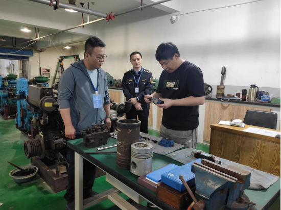 我校作为江苏省内河航运人才培养的重要基地和全省内河一类轮机实操考点,考评组严格依据《内河船舶船员适任实际操作考试规范》,依托校内高标准轮机实训中心先进设施设备,考评组重点对“设备操作管理、故障诊断、应急应变、设备检修”四大核心模块进行考核。考生在模拟真实船舶机舱的沉浸式环境中,完成机电设备管理、故障排除及检修等标准化操作,充分展现岗位核心技能。