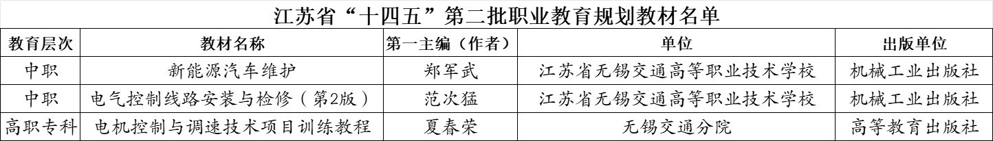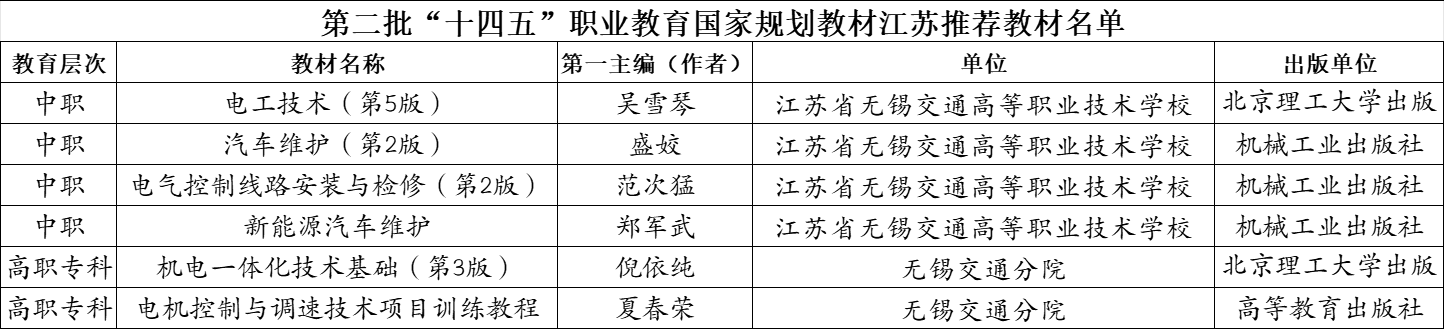 此次教材入选,不仅是对我校教材建设成果的高度肯定,更是学校在职业教育领域深耕细作的有力见证。我校将以此次入选江苏省“十四五”第二批职业教育规划教材为契机,进一步加强教材建设,不断提高教材编写水平,为培养高素质技术技能人才提供坚实保障!