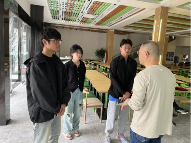 后勤管理检查组同学生代表一行深入到食堂操作间、仓库等地,实地检查食品卫生安全情况。重点检查食堂食品加工场所环境、公用餐具清洗与消毒记录、生熟食品的分类存放以及食品留样情况等。对检查中存在的问题,检查人员当即提出,要求其及时改正。