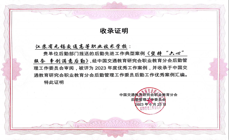 学校后勤工作案例获评中国交通教育研究会2023年度后勤工作优秀案例