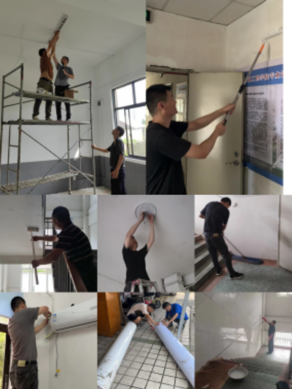 维修工作是后勤工作中不可或缺的一环。暑假期间,维修组的职工们更是忙碌不已。他们不仅要对校园内的各项设施进行日常的检查与维护,还要利用这个黄金期推进一系列的大型维修改造项目。暑假期间,维修组成员更换灯具50只;更换吊扇42台,维修吊扇20台;更换水泵1台;维修电源开关31个;下水道疏通83次;水箱三角阀维修及更换57个等。他们顶着烈日,加班加点,只为确保各项工程能够按时按质完成,为新学期提供有力的硬件保障。