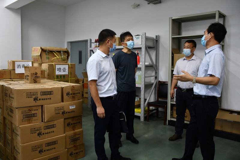 孔组长一行在学校副校长耿兴华的陪同下,实地查看了学校疫情防控工作,现场调研了学校疫情防控物资仓库,翻阅了《江苏省无锡交通高等职业技术学校新型冠状病毒感染的肺炎疫情防控工作方案》《学校疫情防控期间校园通风消毒及卫生工作实施方案的通知》等文件和制度。