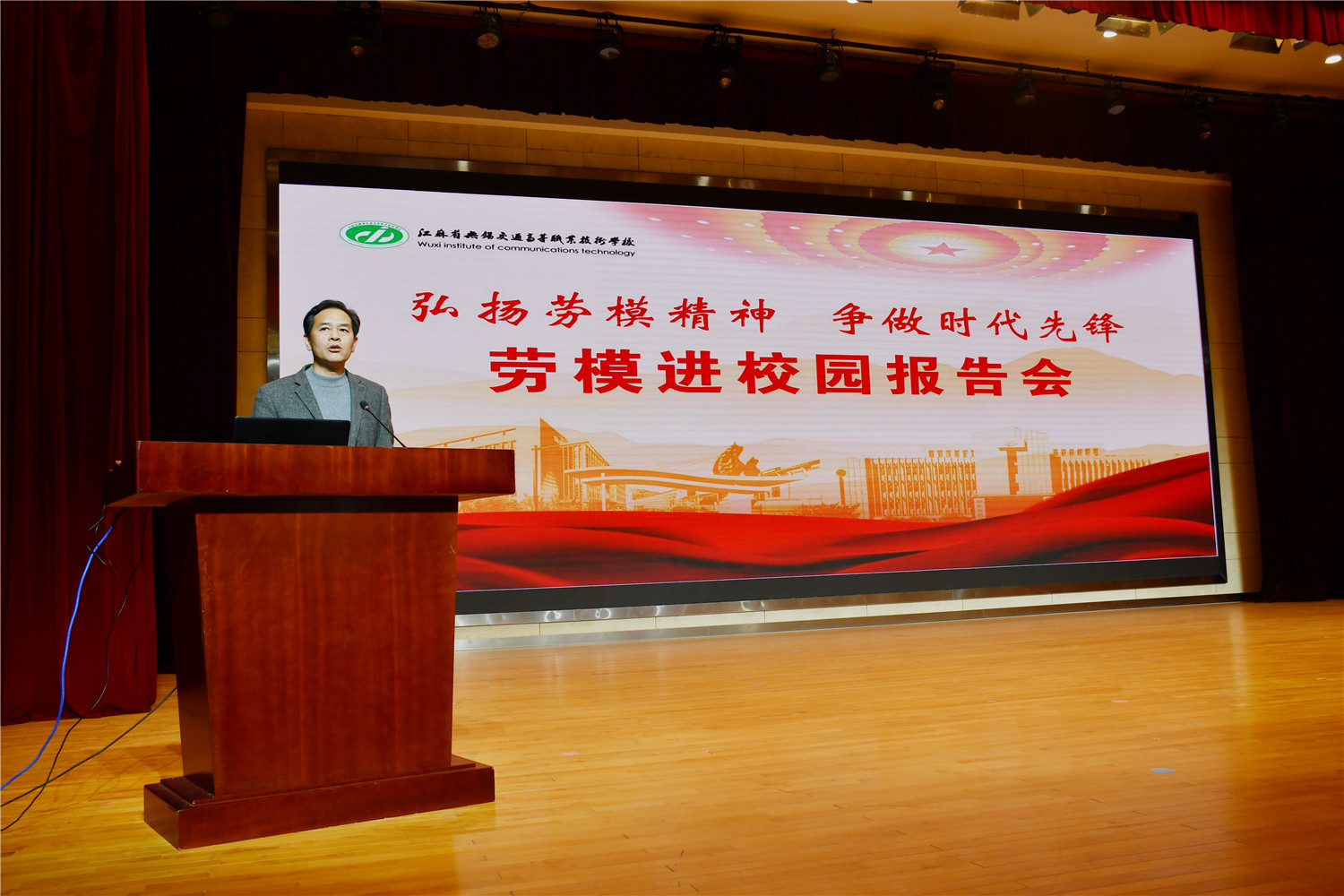 为深入贯彻落实习近平总书记系列重要讲话精神,大力弘扬劳模精神、劳动精神和工匠精神,在广大师生中进一步培育和践行社会主义核心价值观,学??挂?/span>“弘扬劳模精神 争做时代先锋”为主题的劳模进校园活动。12月1日,学校特别邀请了全国先进工作者、南京市公共工程建设中心质量安全处处长沈斌,全国交通建设工匠、省级劳动模范、无锡客运集团有限公司首席技师浦锡东,江苏工匠、江苏汽车技师学院教师骆义伟走进校园,分享他们在平凡的岗位上不平凡的奋斗故事,传递执着专注、精益求精、追求卓越的劳模精神。江苏省交通运输工会四级调研员张旭照出席活动?;嵋橛裳5澄?、副校长耿兴华主持。