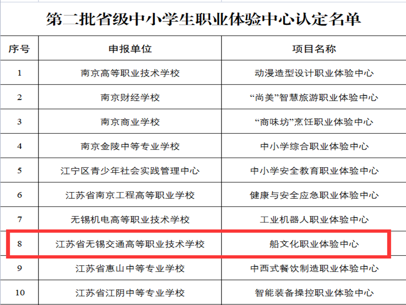 近日,江苏省教育厅发布《省教育厅关于公布第二批省级中小学生职业体验中心认定名单的通知》(苏教职函〔2021〕38号),学?!按幕耙堤逖橹行摹被衿朗〖吨行⊙耙堤逖橹行?。
