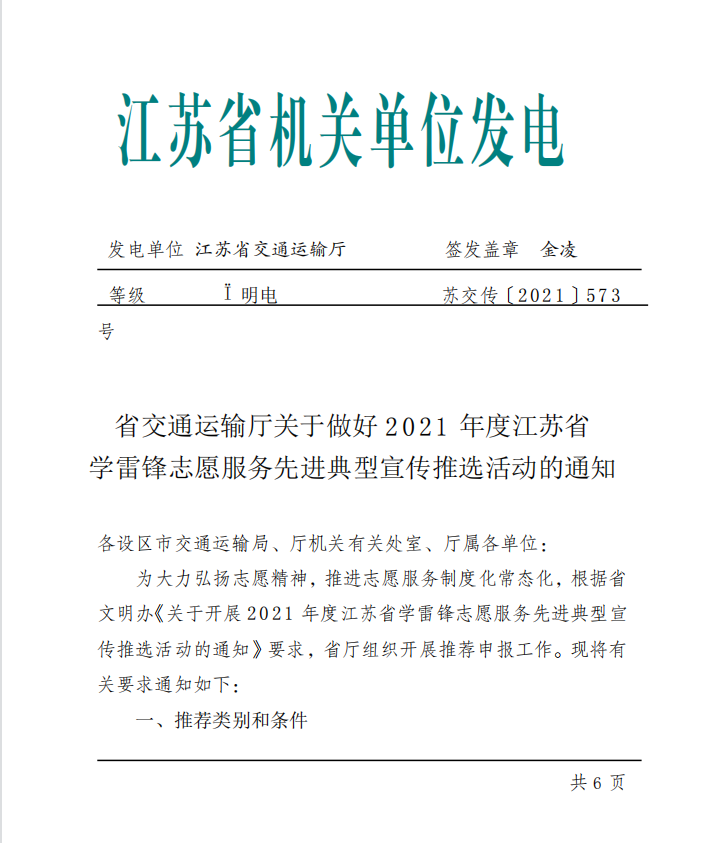 附件:《省交通运输厅关于做好2021年度江苏省学雷锋志愿服务先进典型宣传推选活动的通知》