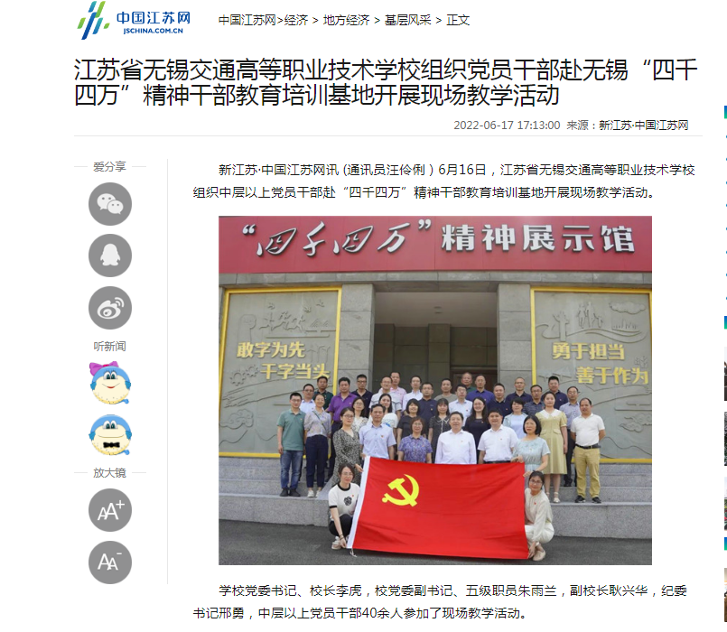江苏省无锡交通高等职业技术学校组织党员干部赴无锡“四千四万”精神干部教育培训基地开展现场教学活动