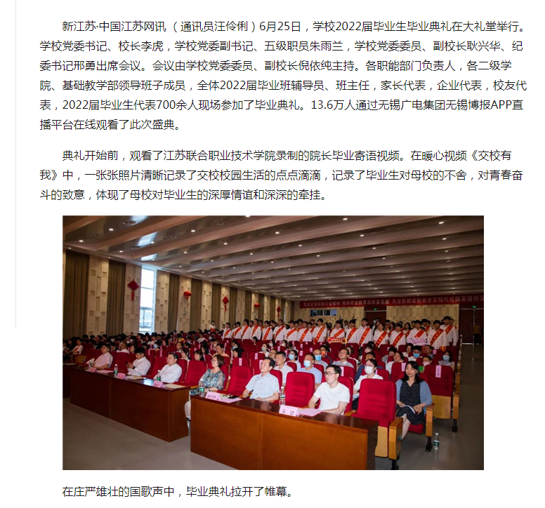 中江网:踔厉奋发向未来 江苏省无锡交通高等职业技术学校举行2022届毕业生毕业典礼