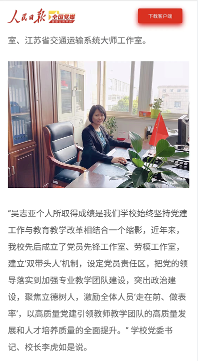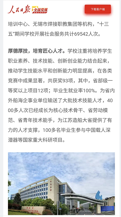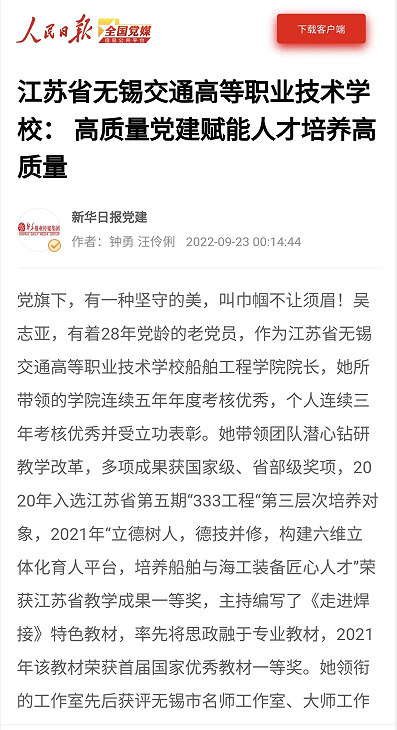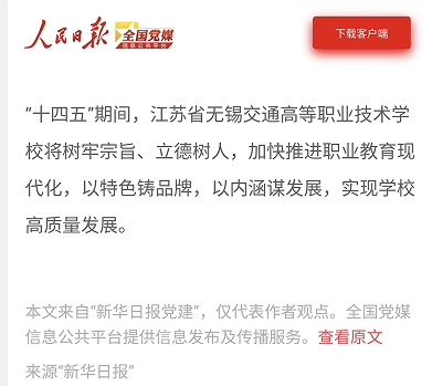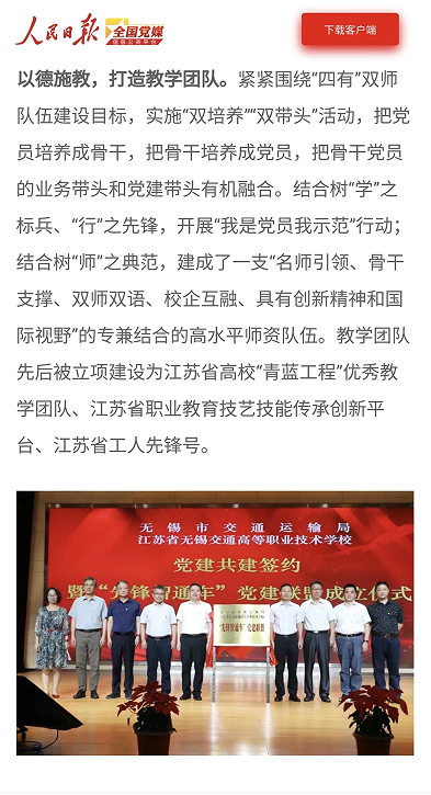 人民日报全国党媒:江苏省无锡交通高等职业技术学校: 高质量党建赋能人才培养高质量