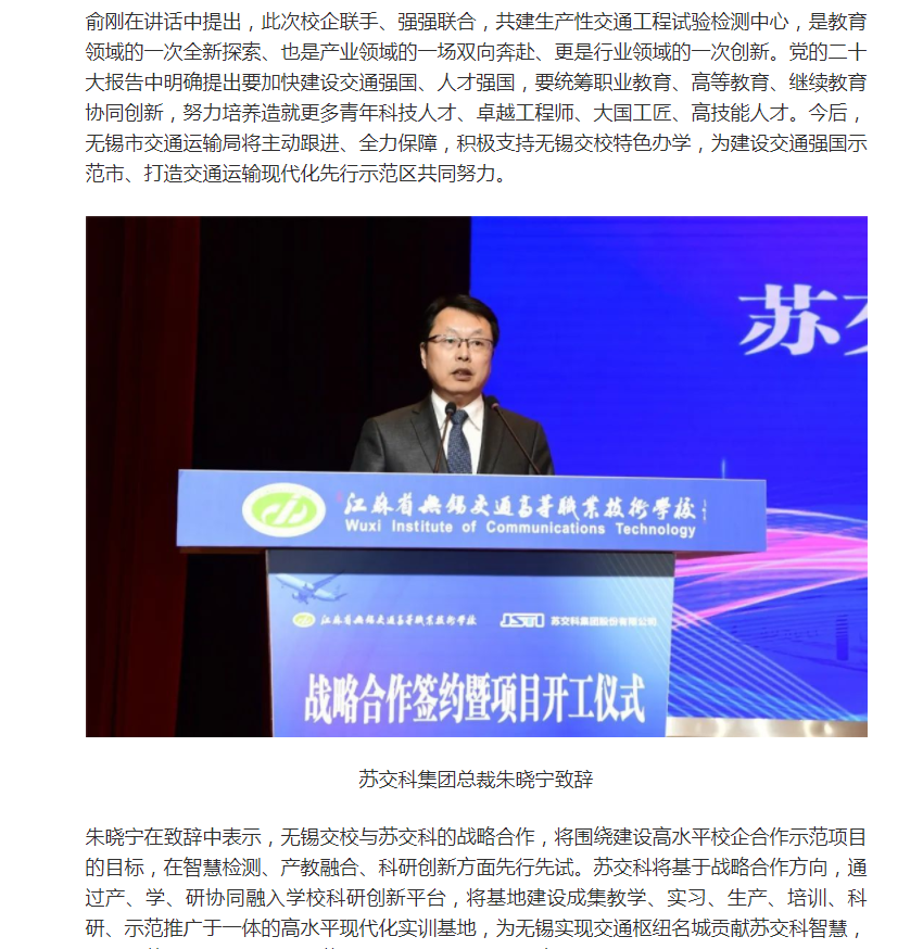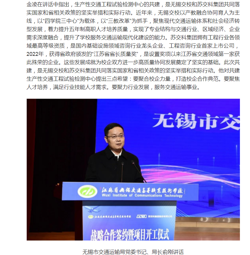 无锡博报:无锡交校与苏交科集团共建生产性交通工程试验检测中心项目正式启动(视频版)