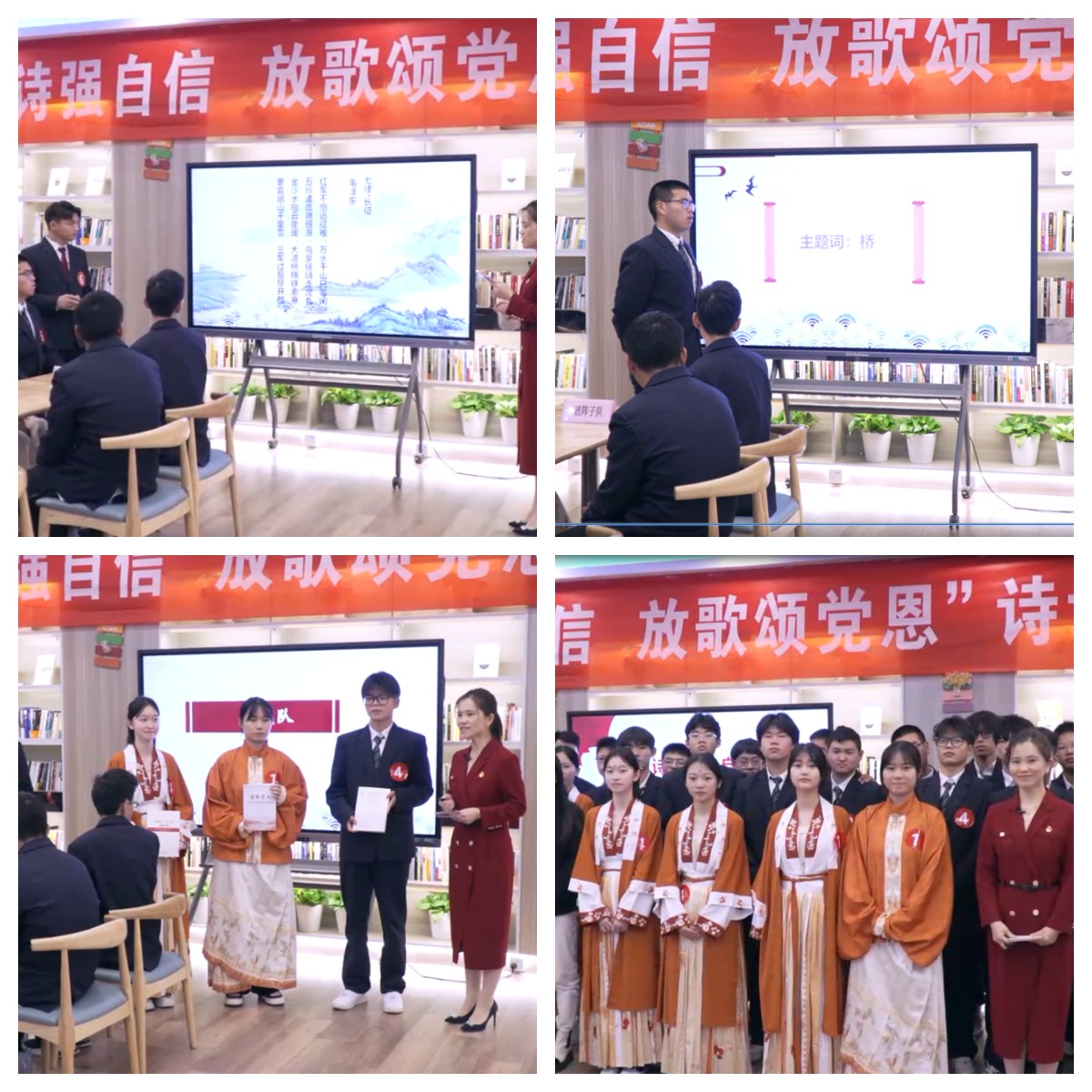 活动由团总支书记任海波老师主持,经过初赛大浪淘沙环节,共有6支队伍脱颖而出进入,决赛内容分为“于宫格里觅家国”、“党史故事映奋斗”“新时代里传诗心”“飞花令里扬精神”四个环节,进行激烈的PK,角逐,活动不仅考验选手的诗词储备,更是对选手心态的磨练。