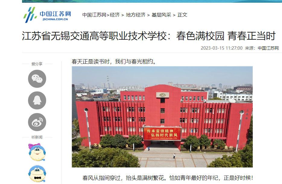 江苏省无锡交通高等职业技术学校:春色满校园 青春正当时_中国江苏网 (jschina.com.cn)