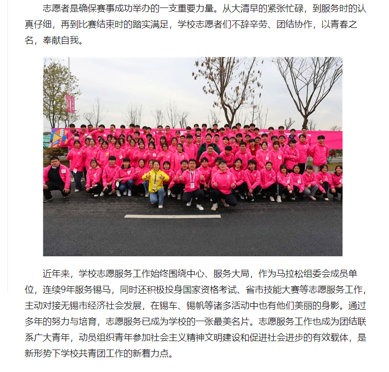 江苏省无锡交通高等职业技术学校志愿者圆满完成2023无锡马拉松志愿服务工作_中国江苏网 (jschina.com.cn)