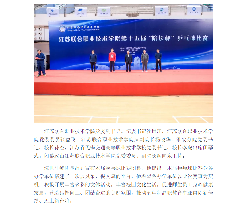 交汇点:展风采 促交流——江苏联合职业技术学院第十五届“院长杯”乒乓球比赛圆满结束