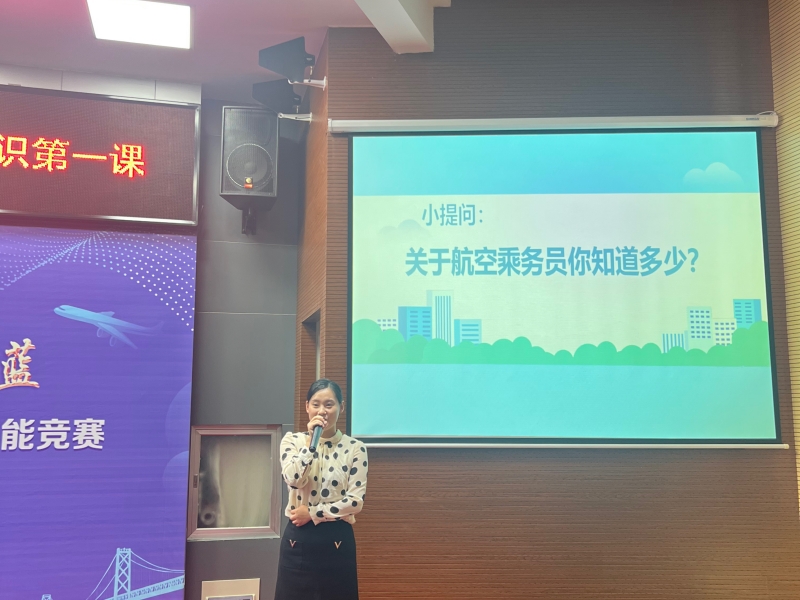 吴依霖老师就空中乘务(航空服务)专业内容做具体讲解,包括空中乘务(航空服务)专业基本介绍、专业课介绍、职业方向及要求和学生在校行为规范等四个方面,让学生对空中乘务员这个职位有了更深入的了解,她要求大家平时学习生活中也要用空中乘务员的标准来规范自己,成为一个优秀的空中乘务(航空服务)专业学生。