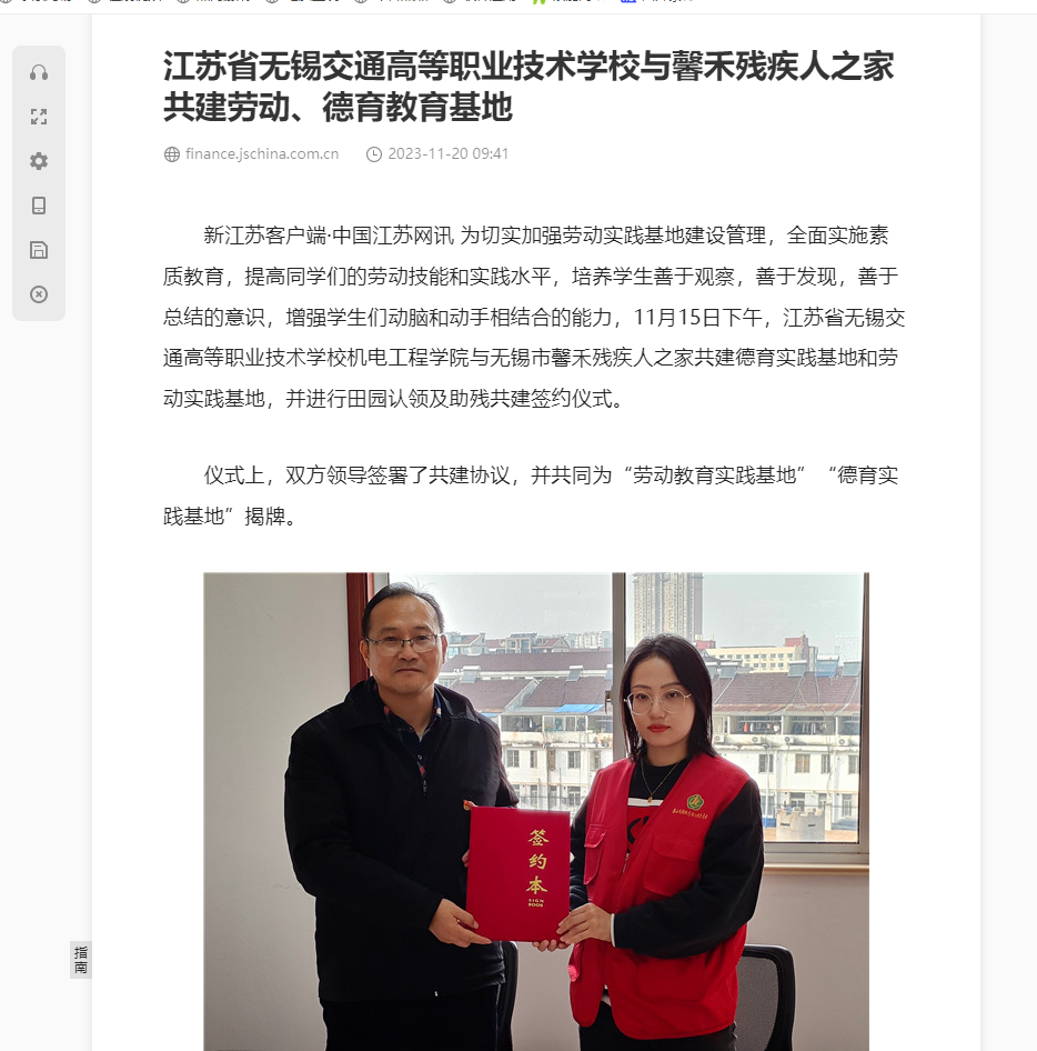 中江网:江苏省无锡交通高等职业技术学校与馨禾残疾人之家共建劳动、德育教育基地