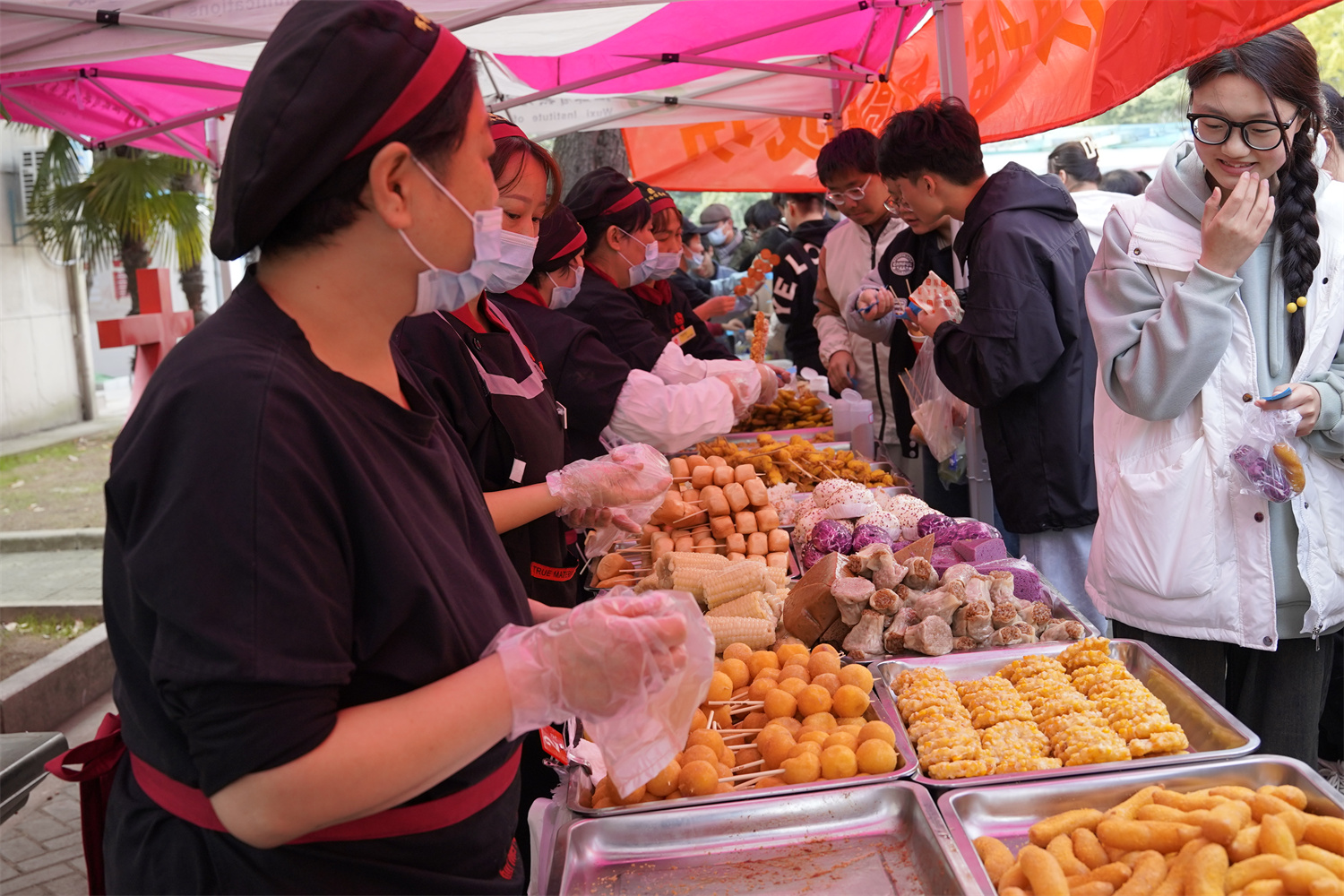 11月22日,由学校后勤管理处、学生工作处主办,北京百灵鸟、苏州同发、南京辉玲缘、世纪华联超市、虹盛超市、校园书店协办的学校2023年第七届美食节正式开幕。
