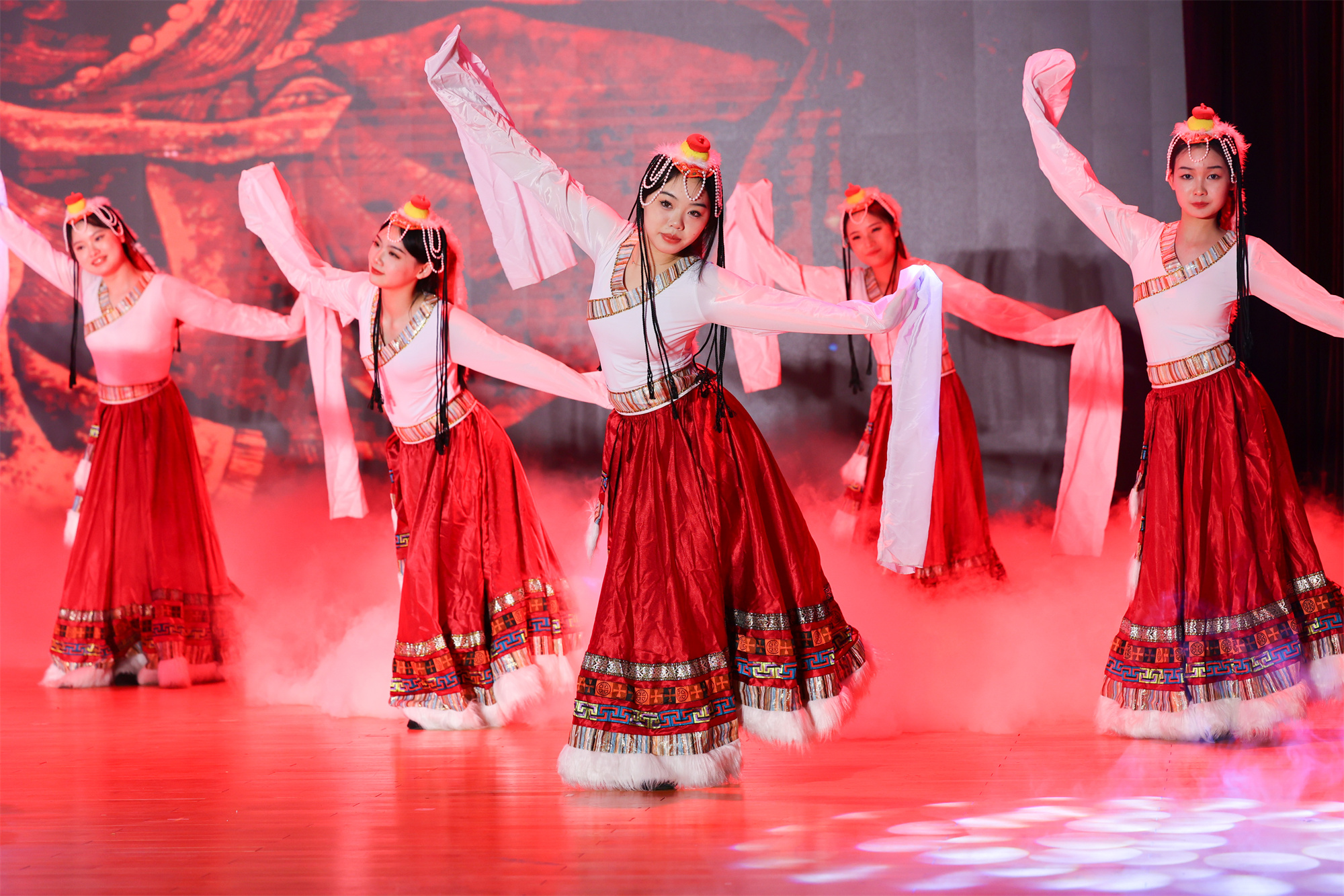 演出在精彩开场旗鼓舞狮表演《鼓舞新征程》中拉开序幕。整场晚会分为“回望初心路”“奋斗青春路”和“ 圆梦复兴路”三个篇章,集多种舞台表演形式,呈现出一场无与伦比的视听盛宴。一场音诗画《信仰》,生动讴歌了先烈坚贞不屈、追求自由的革命精神;中国民族舞《再唱山歌给党听》,用灵动柔美的舞姿,展示民族舞蹈的魅力;拉丁舞《说书人》融合了古风,一把折扇勾勒出别样的美感;诗朗诵《盛世中国》用声音传递真情,以真情赞颂祖国!最后,晚会在一曲《走向复兴》的大合唱中结束,交校师生将用嘹亮的歌声,唱出了交校师生的豪情和勇毅。师生和共建部队官兵的现场演出精彩纷呈,丰富的演出内容,精彩的舞台效果深深打动了现场观众,赢得了热烈而持久的掌声。