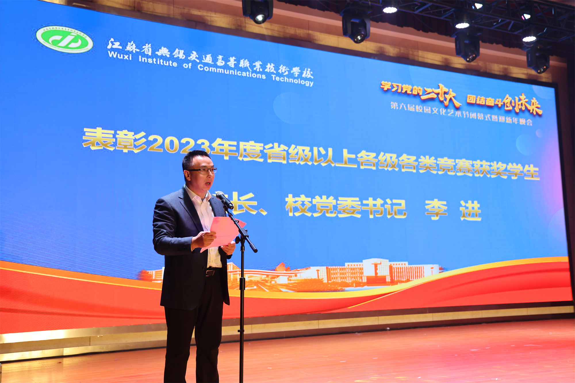 会上,李进校长致第六届校园文化艺术节闭幕式暨2024年新年贺词。他提出,校园文化艺术节是学校加强文化建设、展示校园文化艺术水平的最佳载体。一直以来,学校都将文化建设与学生长远发展有机结合,丰富了同学们的校园文化生活,也打造了精彩的第二课堂体系;展示了同学们朝气蓬勃的精神风貌,也营造了积极的校园文化环境。他指出,今后,学校将继续以校园文化艺术节为重要抓手,搭建具有时代特征、交校特色的校园文化平台,使学校真正成为传递时代担当、人文情怀的精神家园。他希望同学们能积极投身到校园文化活动,用向美向上向善的价值追求,提升自己的综合素质,锻炼自己的毅力和勇气。用扎实的文化功底、良好的文化素养、深厚的艺术底蕴、在火热的青春中放飞人生梦想,在拼搏的青春中成就人生华章。