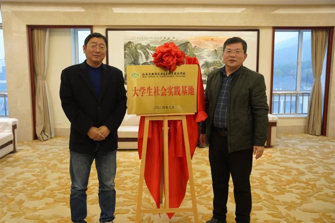 仪式前,校党委委员、副校长范次猛与荣巷街道党工委副书记、政协工委主任孙兵共同为大学生社会实践基地揭牌。
