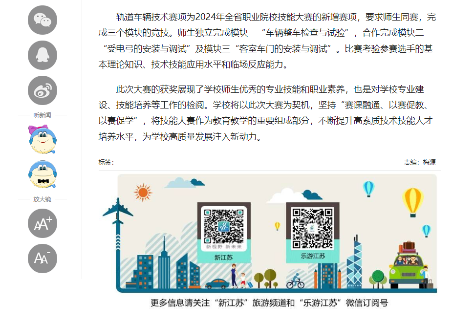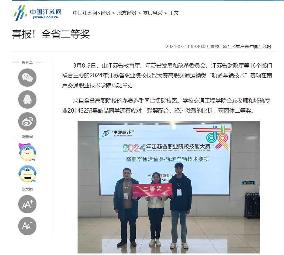 中江网:“初涉赛场”到“双金加冕” 江苏省无锡交通高等职业技术学校金牌团队淬炼记