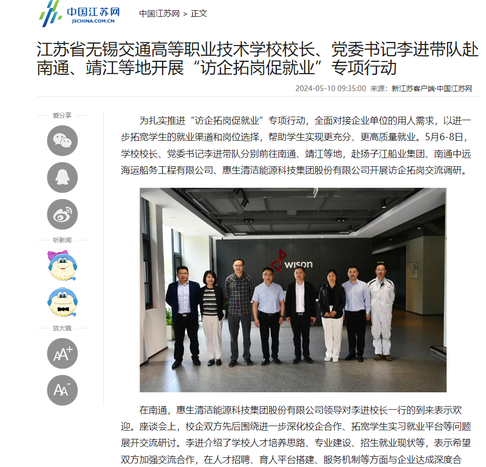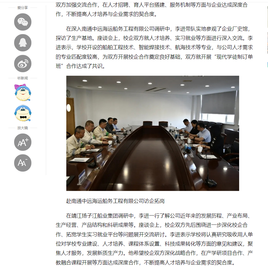中江网:江苏省无锡交通高等职业技术学校校长、党委书记李进带队赴南通、靖江等地开展“访企拓岗促就业”专项行动