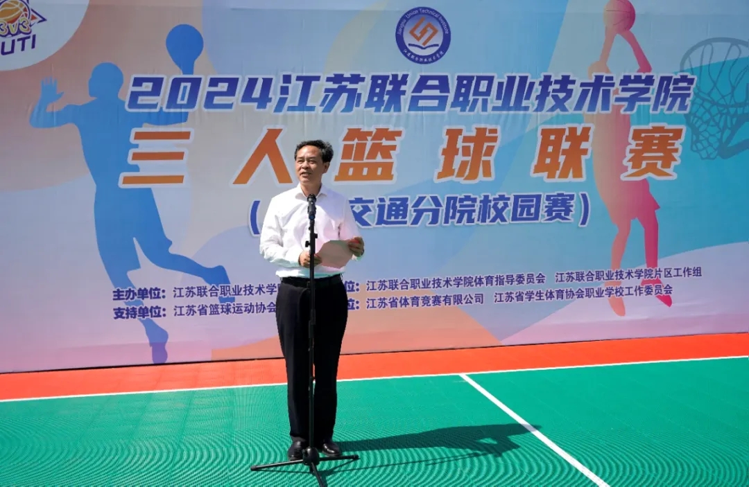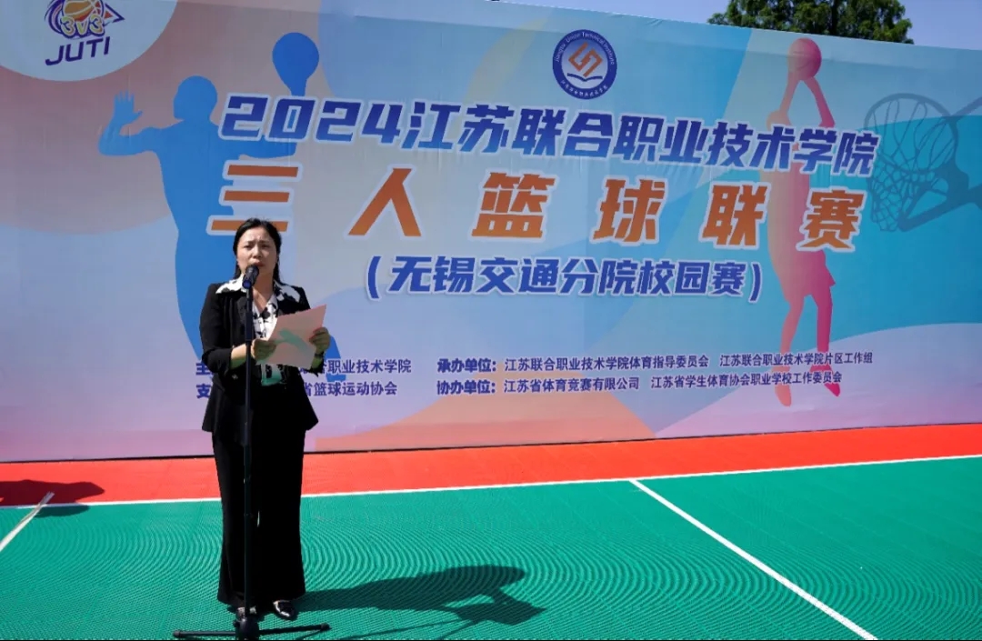 5月29日下午,2024江苏联合职业技术学院三人篮球联赛无锡交通分院校园赛在钱荣校区篮球场火热开赛。学校党委委员、副校长耿兴华,学校职能部门、二级院部负责人,各代表队领队、教练员、运动员以及部分师生参加活动??皇接裳5澄?、副校长吴雪琴主持。