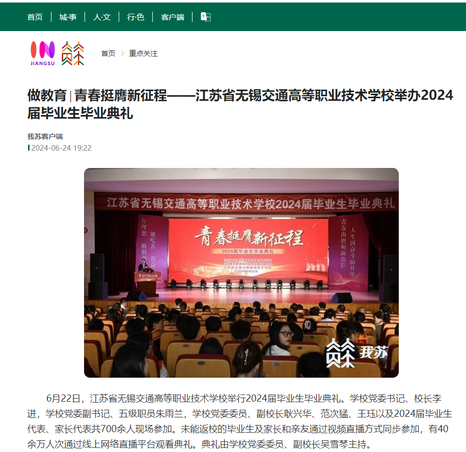 交汇点:青春挺膺新征程 江苏省无锡交通高等职业技术学校举办2024届毕业生毕业典礼
