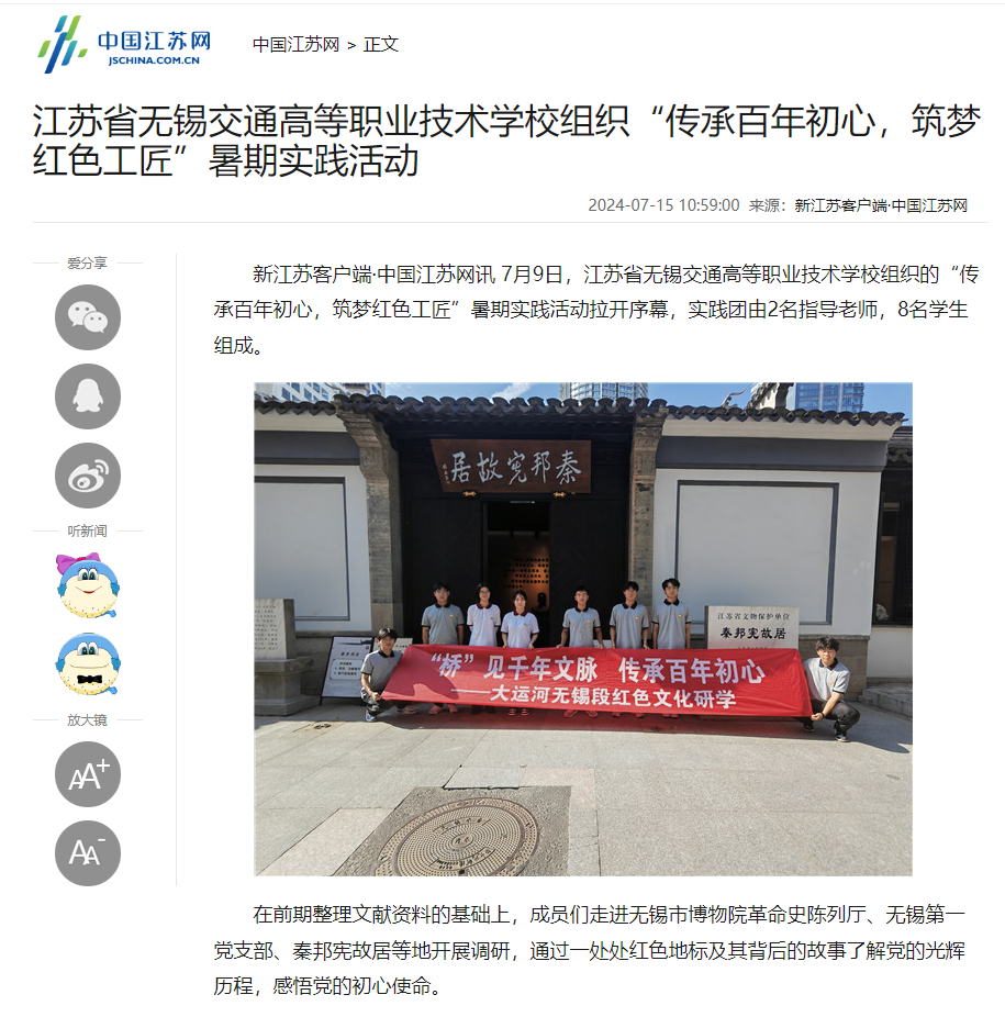 中江网:江苏省无锡交通高等职业技术学校组织“传承百年初心,筑梦红色工匠”暑期实践活动