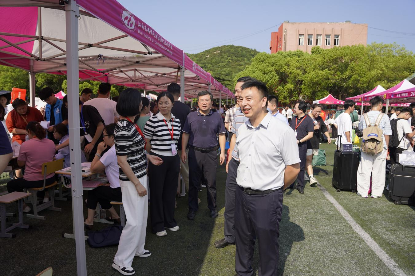 新生报到期间,学校党委书记、校长李进等全体校领导来到迎新现场,深入新生报到各流程服务点、学生宿舍、食堂等了解迎新工作保障情况,与前来报到的新生和家长们亲切交流。