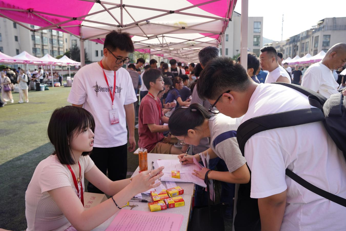 校园内形式多样的宣传展板吸引着新生和家长驻足留影,纷纷记录与交校初次相遇的美好一刻。
