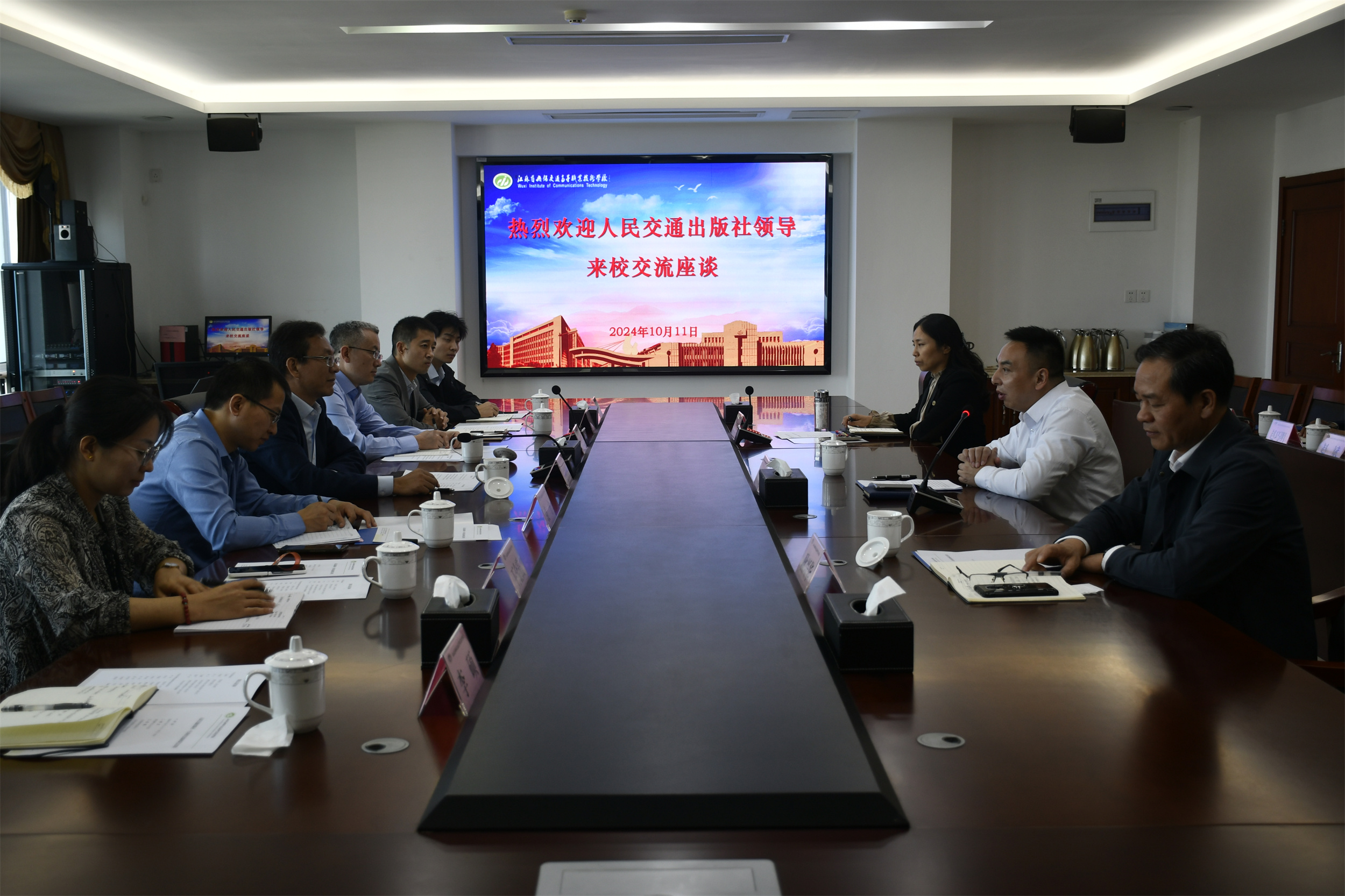 李进对王振军一行的到来表示欢迎,他介绍了学校的办学历史、发展现状、专业设置和教材开发等情况,对学校与人民交通出版社的合作表达了殷切期望,希望能够共同探索公共基础课、交通运输类教材建设的新模式、新路径。