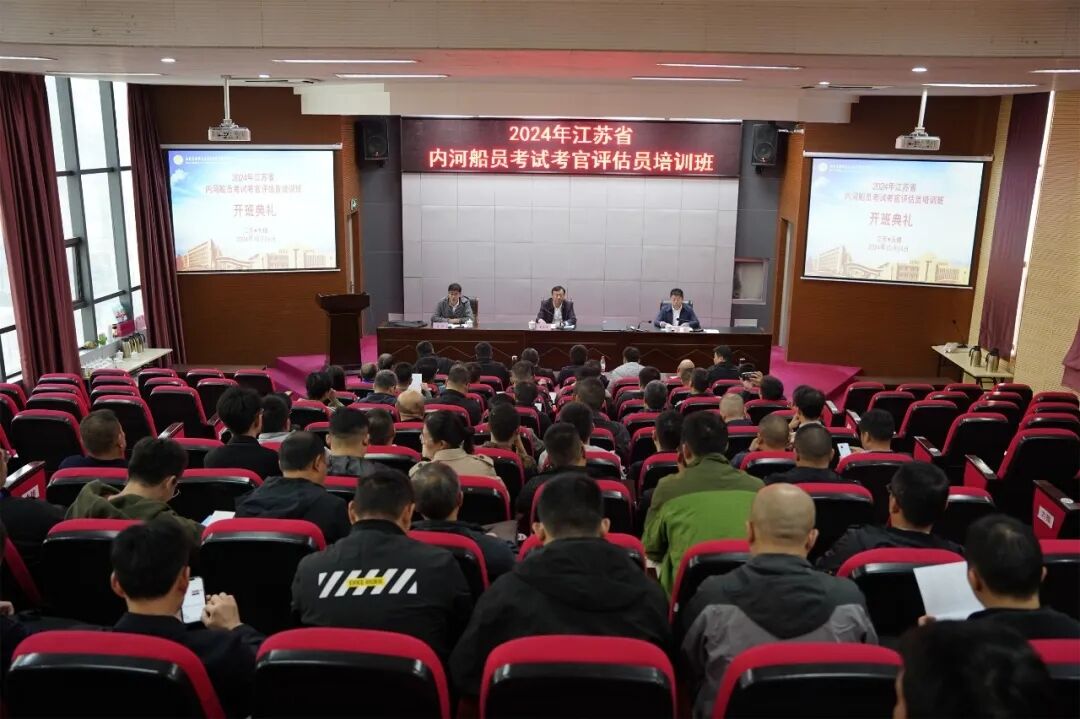 为加强我省内河船舶船员考试考官、评估员队伍建设,进一步提高内河船员考试评估质量,根据江苏省交通运输综合行政执法监督局工作安排,10月23日,2024年全省内河船员考试考官评估员培训班在我校正式开班。全省船员执法部门和社会专业人员共76名学员参加了开班活动?;疃山帐〗煌ㄔ耸渥酆闲姓捶喽骄炙暇指叻瓶瞥ぶ鞒?。