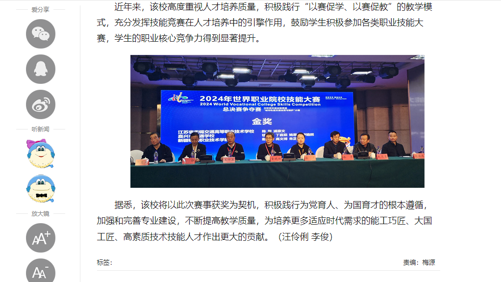 中江网:“初涉赛场”到“双金加冕” 江苏省无锡交通高等职业技术学校金牌团队淬炼记
