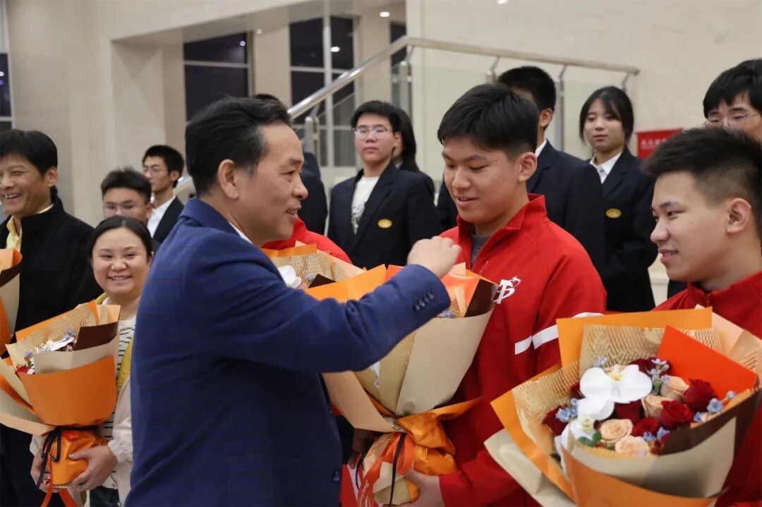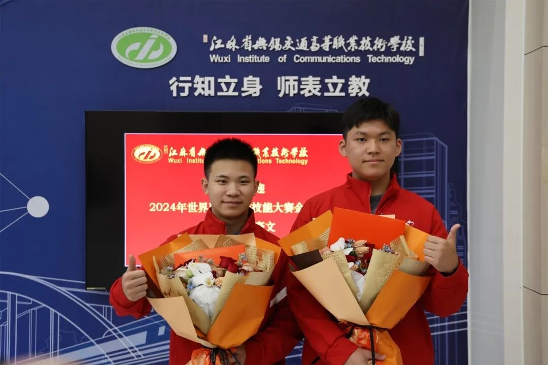 10月30日下午,学校举行欢迎仪式。在大赛领队、学校党委副书记朱雨兰老师的带队下,我?;窠毖∈殖络艉推趾牢男儆?。学校党委委员、副校长耿兴华向获奖选手表示祝贺:“祝贺你们取得可喜的成绩,也感谢你们的努力拼搏,为江苏争光、为学校争光!”参赛选手陈玺和浦豪文则表示:“取得满意的成绩,要感谢学校的培养,感谢大赛主办方提供的竞技平台,感谢指导老师的辛勤关怀,希望在今后学习生活中也将不断提升自身技能,努力为学校争光?!被竦谩坝判阒傅冀淌Α背坪诺睦羁 ⑸蚣尤世鲜Ρ硎?,“感谢学校提供的这样一个成长锻炼的平台,通过这次大赛为今后指导学生比赛工作积累不少经验,也为后续工作打下扎实的基础?!敝芪Р欢舷炱鹑攘业恼粕?/span>