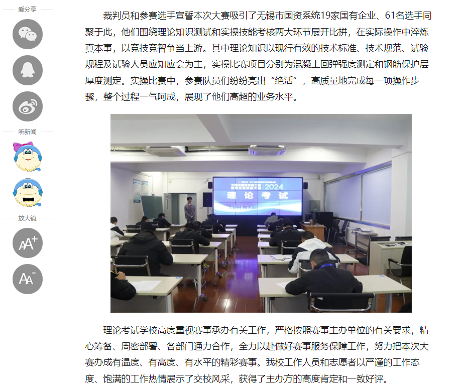 新江苏:无锡市国资系统工程建设试验技能大赛在江苏省无锡交通高等职业技术学???/a>
