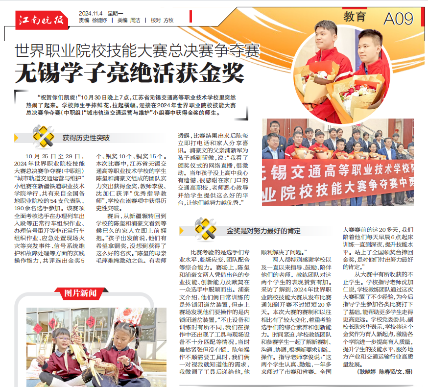 中江网:“初涉赛场”到“双金加冕” 江苏省无锡交通高等职业技术学校金牌团队淬炼记