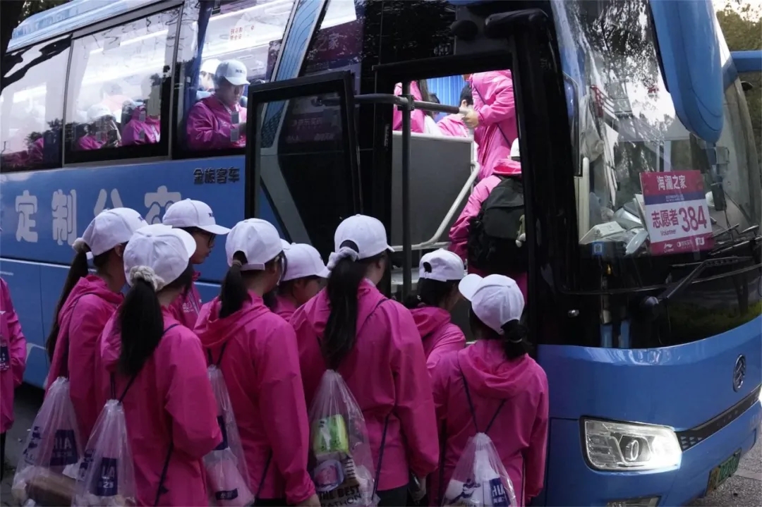 3月23日清晨6点,当城市还未完全“苏醒”,停在无锡交校门口的大巴车外,已聚集了一群身着“?;ǚ邸钡闹驹刚摺?20余名马拉松志愿者整装待发,即将前往无锡马拉松保障点位。