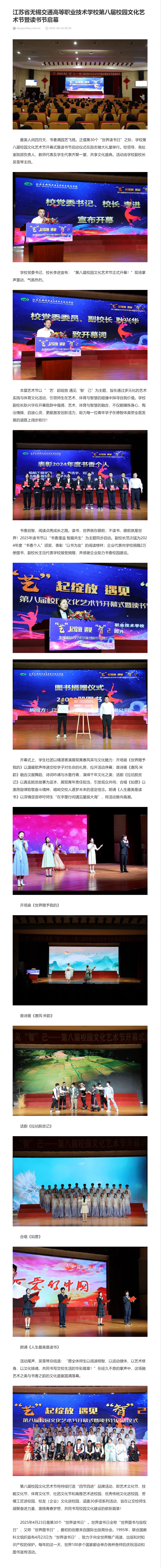 新华报业网:江苏省无锡交通高等职业技术学校第八届校园文化艺术节暨读书节启幕