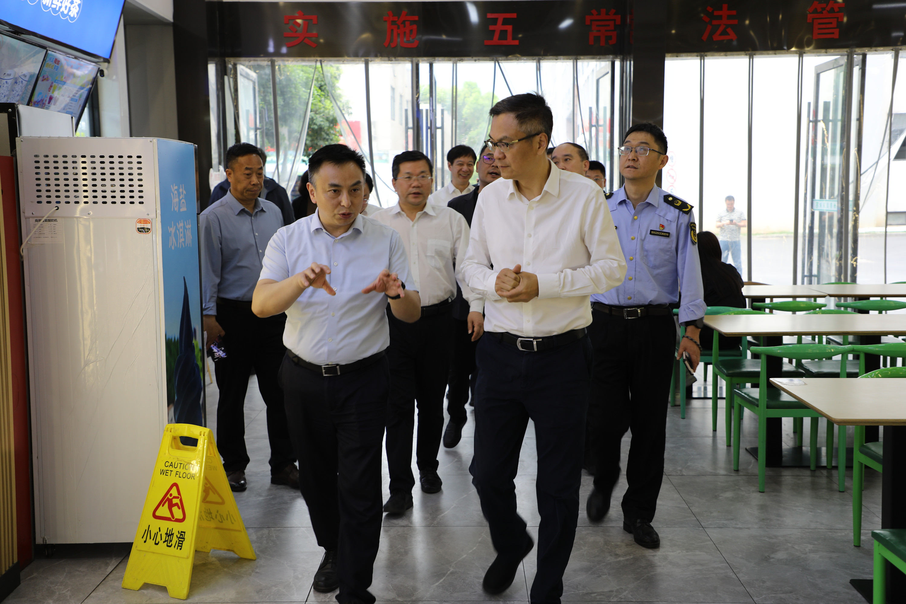 4月24日下午,无锡市滨湖区委常委、宣传部部长、统战部部长陈虎率区公安分局、消防救援大队分管负责同志组成专项检查组,莅临我校开展2025年春季校园安全工作督导调研。校领导班子全体成员及党政办公室、安全保卫处、后勤管理处等职能部门负责人全程参与陪同。