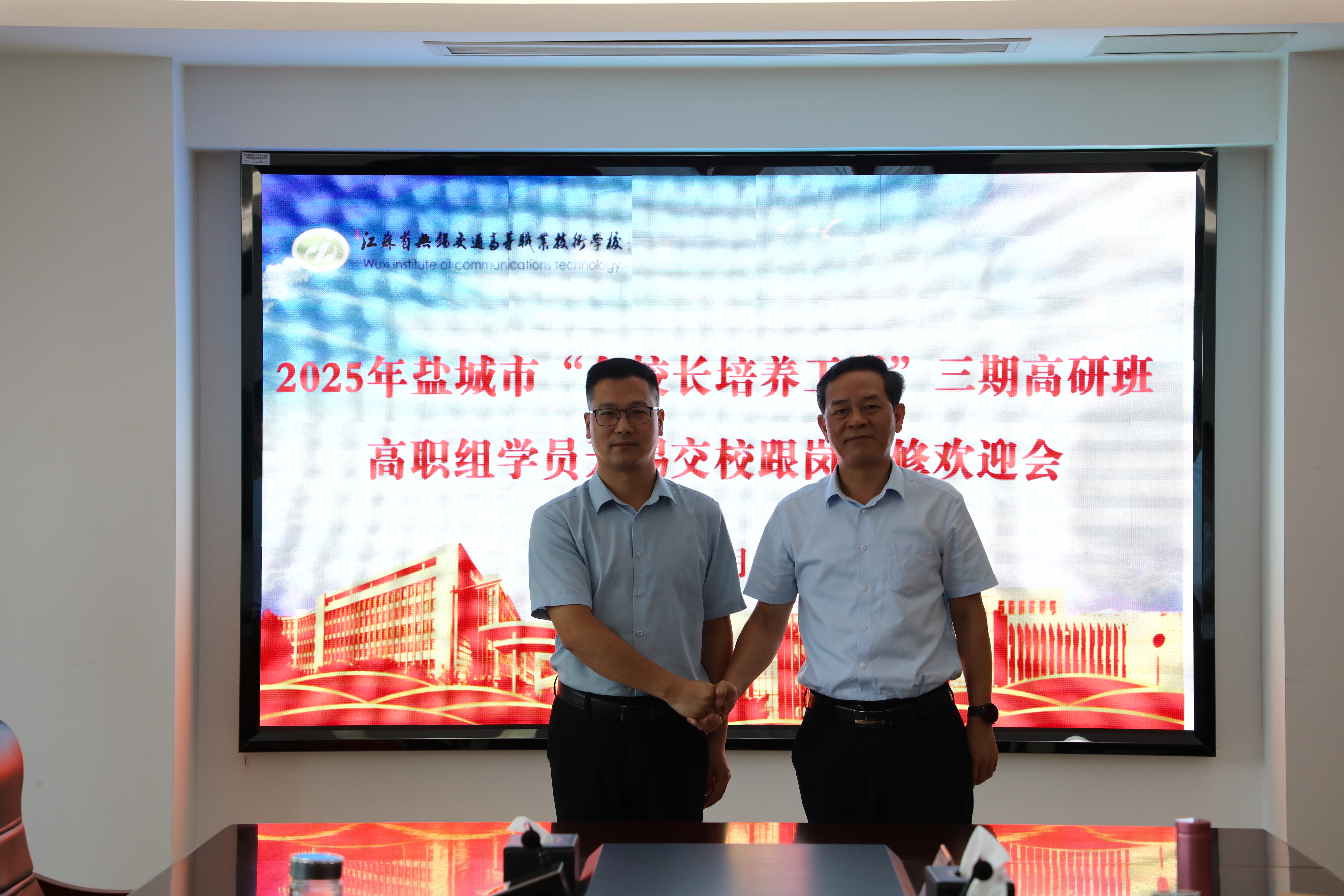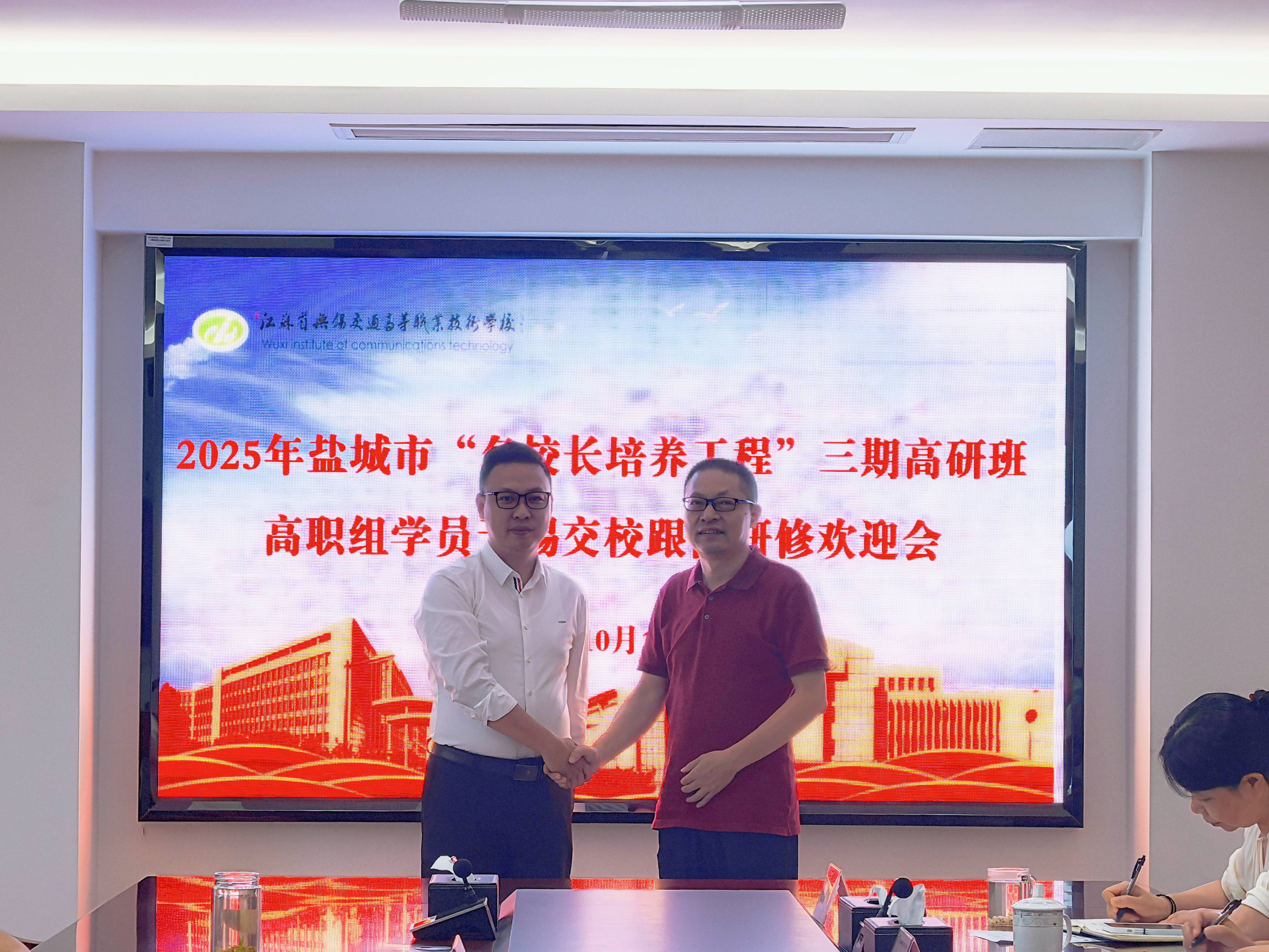 根据江苏省教师培训中心和江苏教育行政干部培训中心安排,10月13日上午,学校在512会议室举行盐城市“名校长培养工程”三期高研班高职组学员跟岗研修欢迎会,盐城海洋职业学校党委书记王海涛,现代服务系党支部书记、主任卞鹏和盐城机电高等职业技术学校副校长祁玉洲等3名跟岗学员参加欢迎会,学校党委书记李进、校长耿兴华、副校长范次猛出席会议,相关职能部门负责人和院部负责人参加会议,会议由范次猛副校长主持。
