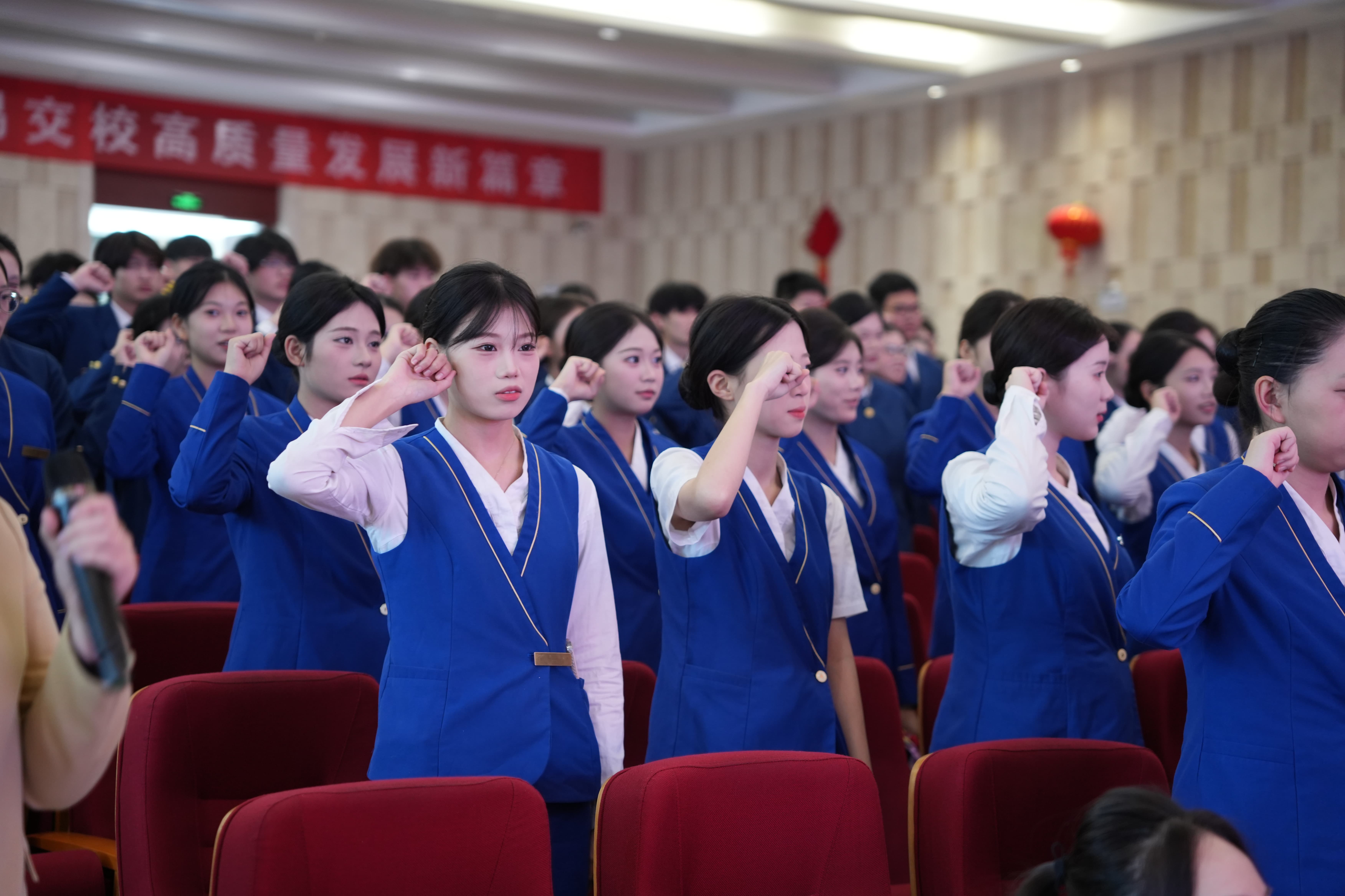 庄重的集体宣誓环节中,全体航空专业学生起立举拳,“蓝天追梦、思政铸魂、航空报国、青春担当”的嘹亮誓言响彻礼堂,彰显着青年学子投身民航事业的坚定决心。