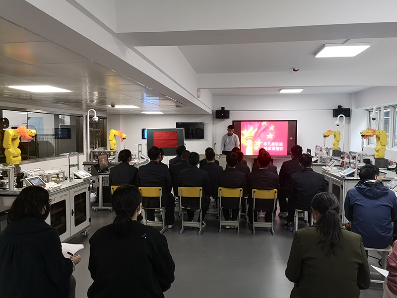 在活动中,华亦峰老师向学生们教授了发那科工业机器人轨迹??槭笛担ü彩谟沂侄ㄔ蛉醚茄Щ崃巳绾稳范üぷ魈ǖ脑硕较?,并且通过对具体操作流程的详细讲解,教授学生们如何操作工业机器人进行定点并运用线性运动的L指令绘制五角星。在课堂中,华老师灵活融入思政元素,增植学生们的爱国主义情怀,强调人生定位和规划对自身发展的重要性,以及精益求精的工匠精神对未来的学习和工作的重要性。
