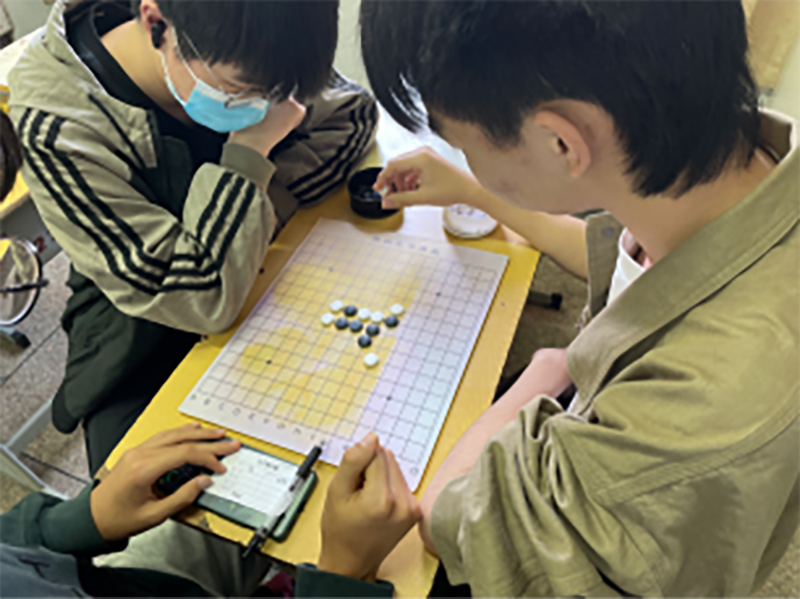 此次比赛的宗旨是以棋会友,其乐无穷。为了比赛的公平性和竞技性,此次比赛采取抽签分组,三局两胜选出晋级选手,再进行决赛。每个星期三下午班会课后开始进行比赛,比赛现场井然有序,气氛欢乐。比赛开始后,棋盘上大家都不谦虚,你来我往,招招逼人,稍有不慎,便会全盘皆输。各参赛选手均全神贯注,力争胜利。黑白棋子之间不断的变换,碰撞出智慧的火花,比赛结束后,大家仍然不忘交流比赛心得,互补长短。