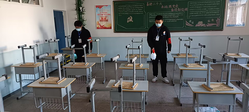 在活动中,学院学生会志愿者以小组为单位,深入各个教室,全面进行教室卫生打扫及消毒消杀工作,把教室的每一个角落都进行了打扫和喷洒,确保学院在校师生能够拥有安全、整洁、舒适的课堂环境,同时在日常学习生活中,志愿者们叮嘱在校学生,佩戴好口罩,提高思想意识,加强自我防护。