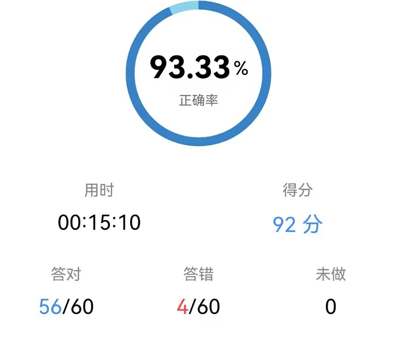 虽说比赛时间较为紧迫,但是通过同学们日常的刷题、积累,在短短的二十分钟答题时间里,也取得了不错的成绩,可以看出同学们对此次比赛的重视和积极向上的态度,珍惜每一次可能得奖的机会,如俗话所说:努力不一定有结果,但不努力就一定没有结果。在未来,同学们会继续维持着良好的学习氛围和进取精神,努力学习,蒸蒸日上。