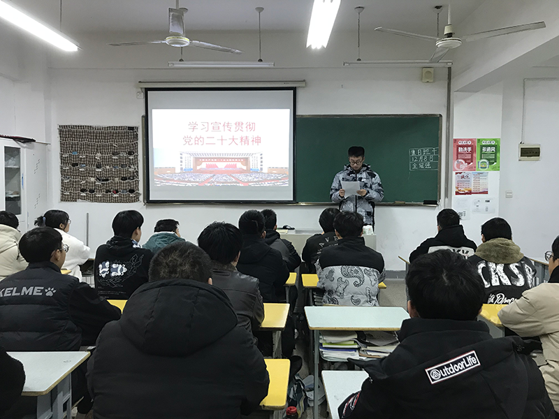 为深入学习贯彻党的二十大精神,全面领会党的二十大报告要义、丰富内涵和精神实质,引导青年学生学懂、悟透党的二十大精神,把思想和行动统一到党的二十大精神上来,12月8日,机电工程学院211341班组织开展“学习宣传贯彻党的二十大精神”主题班会。